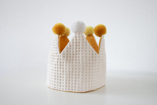 Stoffkrone zum Binden "Kinder-Geburtstag & Co" (Sand/Senfgelb)