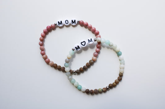 Mama-Armband "MOM" (Rosa/Braun/Beige)