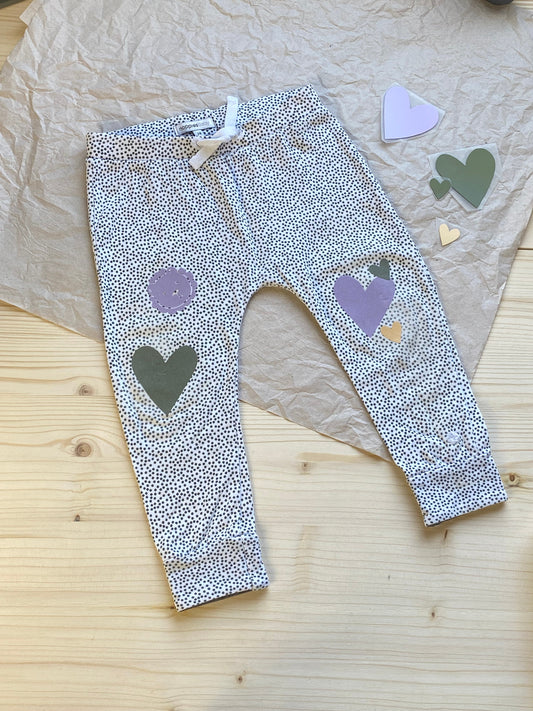 Kleine Bügelmotive "Herz"(Lavendel/Khaki) im 4er-Set