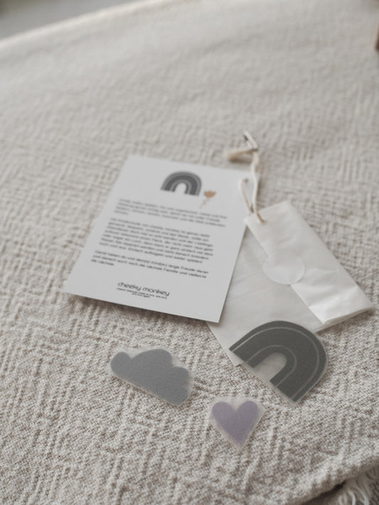 Kleine Bügelmotive "Regenbogen"(Lavendel/Khaki) im 4er-Set
