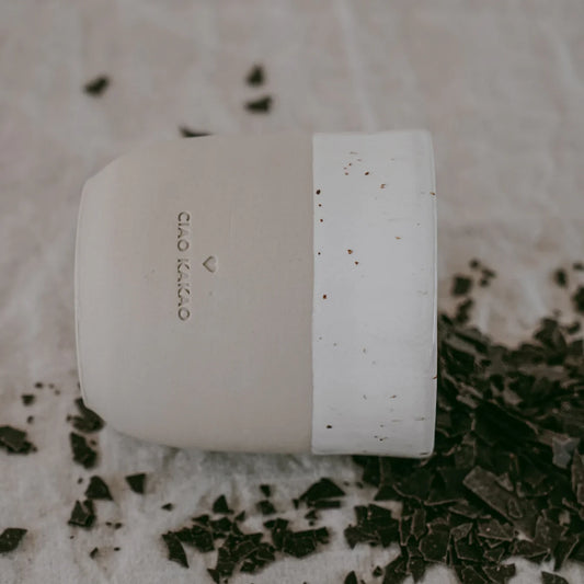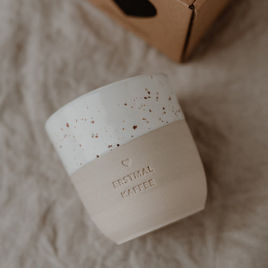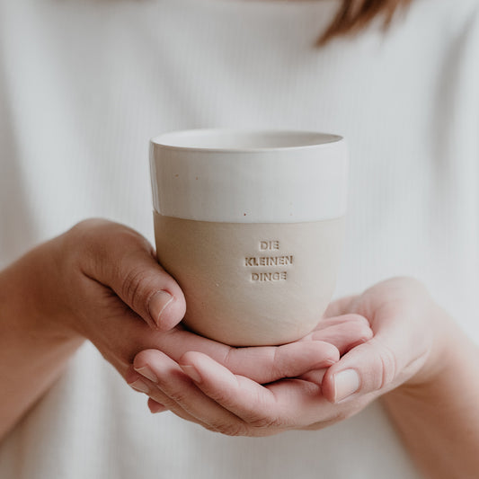 Eulenschnitt - kleiner Steingut Becher "Kleine Dinge" (natur/weiß)
