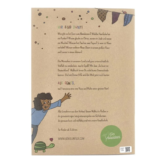 Verpackt werden die Stifte und Wachsmaler in Recyclingkarton und das Hautfarben Malbuch wird auf umweltfreundlichem Naturkarton gedruckt.