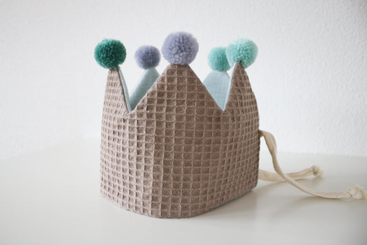 Stoffkrone zum Binden "Kinder-Geburtstag & Co" (Smokey Beige/Mint)