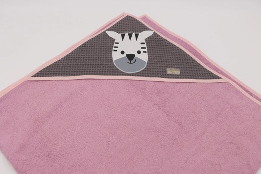 Kapuzenhandtuch - "Zebra" (Dunkelgrau/Rosa)