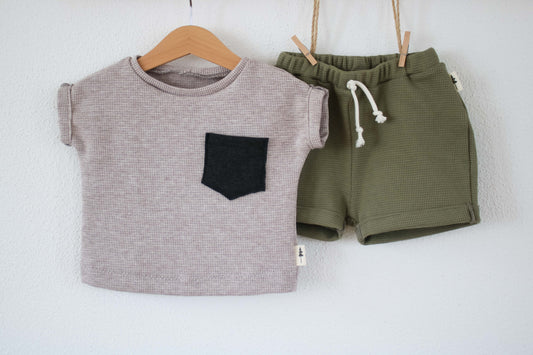 T-Shirt "Waffel" (Beige) mit Tasche