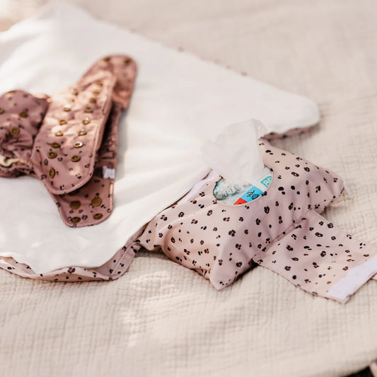 Wickeltasche "Leo Beige" mit Wickelunterlage und Fach für Feuchttücher und Accessoires (nachhaltig schön)