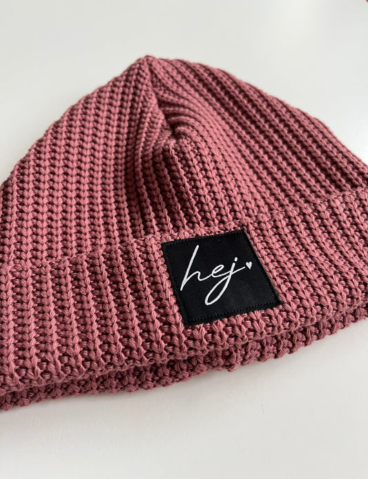 Strick Beanie "HEJ" (Altrosa)