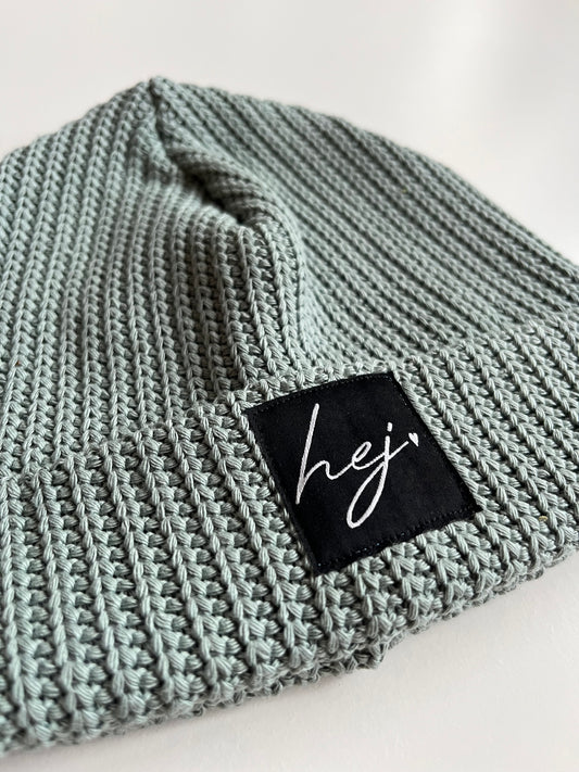 Strick Beanie "HEJ" (Altmint)
