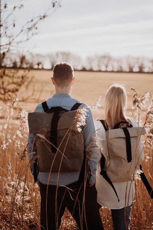 Rucksack "Dude" (Light Grey/Olive) aus Papier
