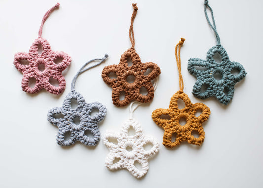 Häkelstern (Braun/Rosa/Mint/Grau/Weiß/Gelb)