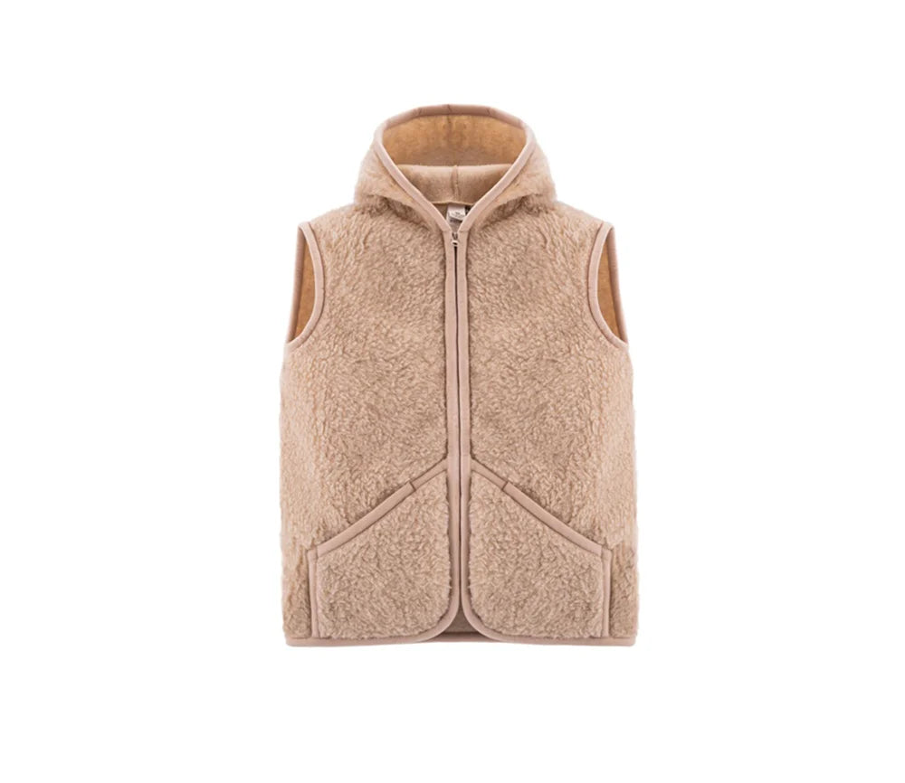 100% Schurwolle für Mamas, Papas, Tanten, Omas und alle die es gerne warm haben. Die Weste hat einen Reißverschluss, zwei Taschen vorne und eine Kapuze.