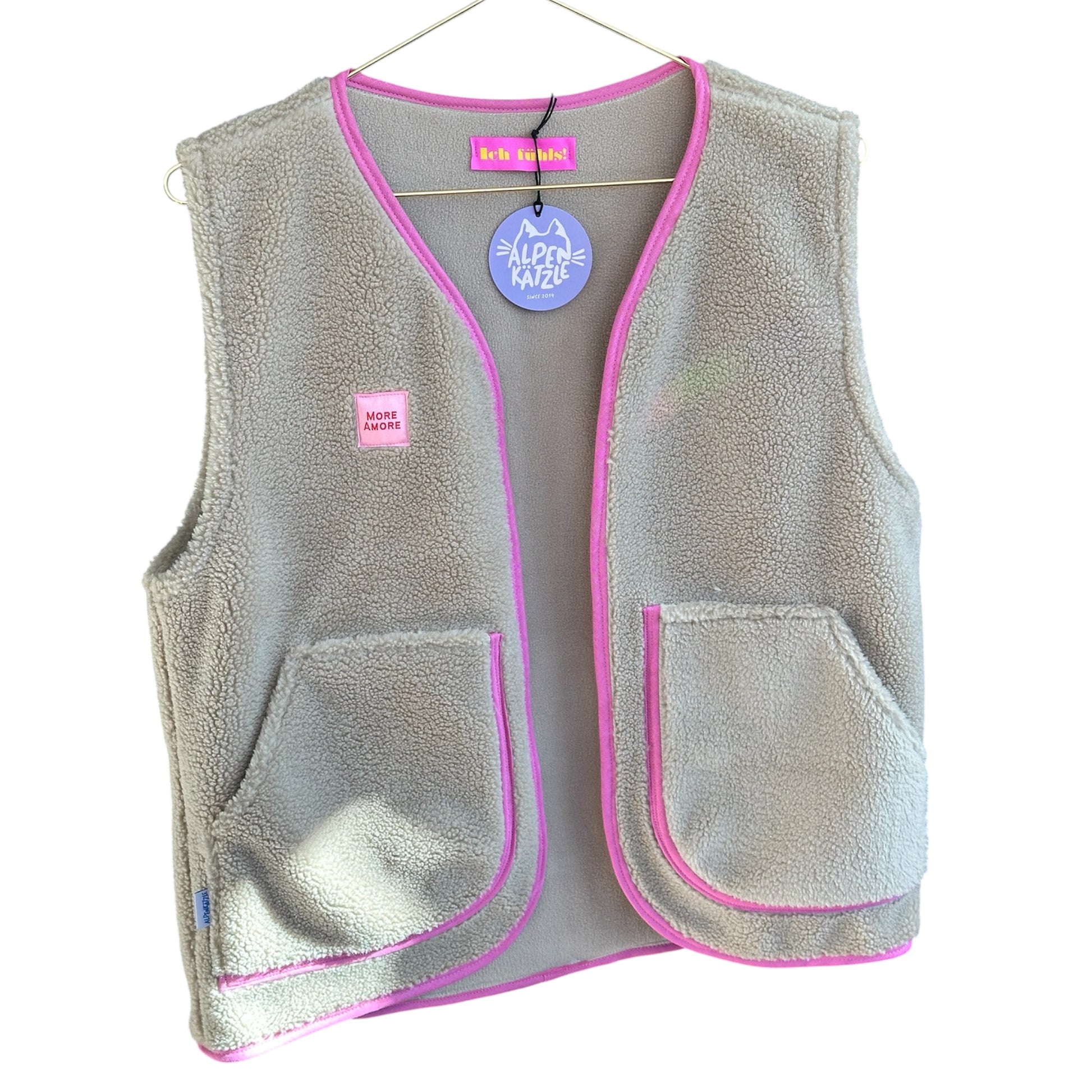 Schöne Weste aus Teddyplüsch, die Weste an sich ist eher kastig geschnitten und fällt großzügig aus.
